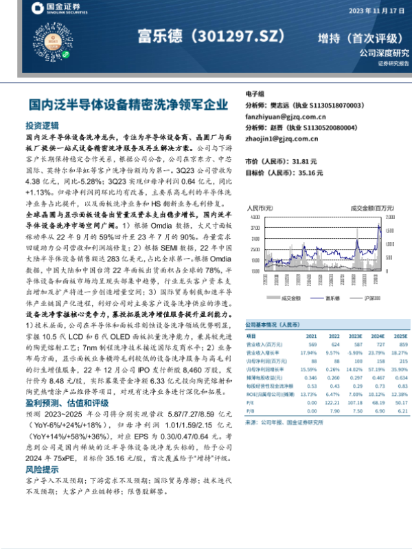 【国金证券】【20231117】富乐德-301297.SZ-国内泛半导体设备精密洗净领军企业-25页 行业研究