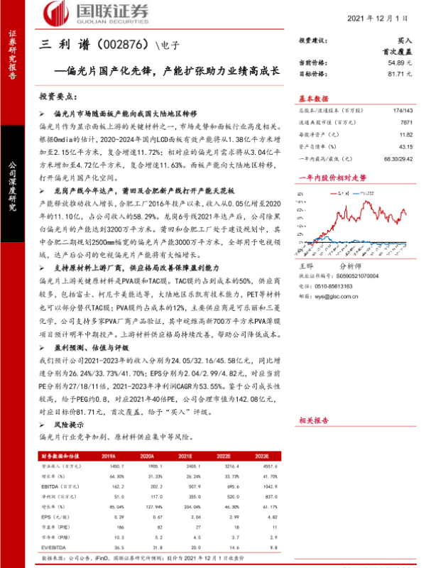 【国联证券】【20211201】三利谱(002876)—偏光片国产化先锋,产能扩张助力业绩高成长-28页 行业研究