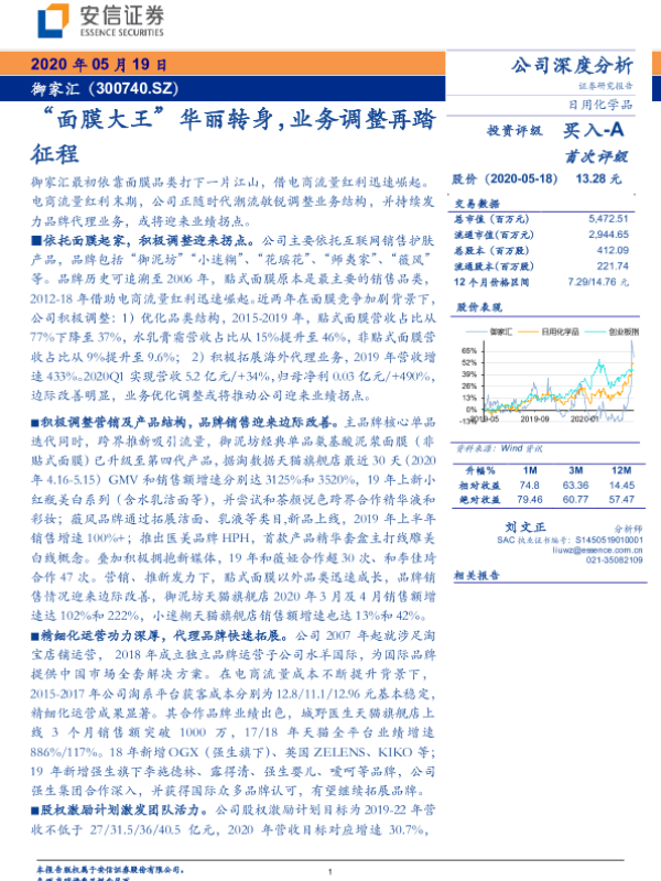 【安信证券】【20200519】“面膜大王”华丽转身,业务调整再踏征程-19页 行业研究
