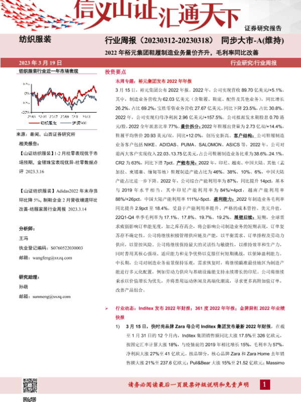 【山西证券】【20230319】纺织服装行业周报:2022年裕元集团鞋履制造业务量价齐升,毛利率同比改善-24页 行业研究