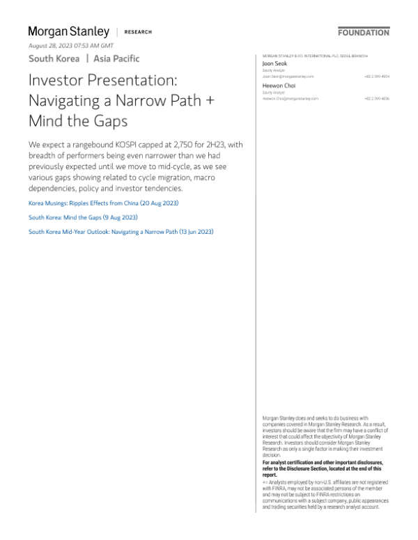 【Morgan Stanley】【20230613】Navigating a Narrow Path South Korea Investor Presentation-58页 行业研究