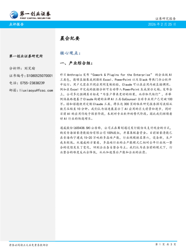 【第一创业证券】【202602】晨会纪要-3页 会议纪要