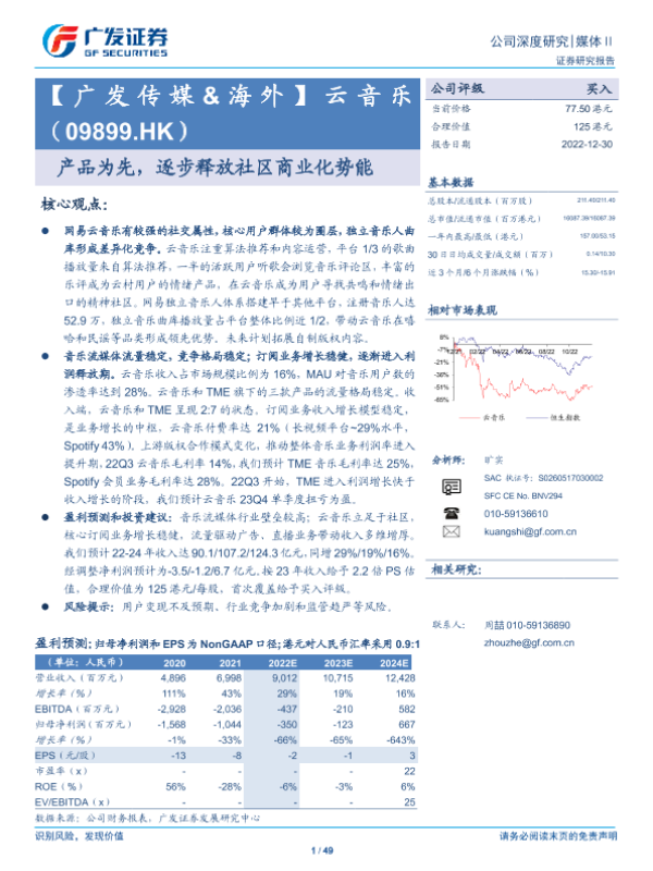 【广发证券】【20221230】云音乐(09899)产品为先,逐步释放社区商业化势能-49页 行业研究