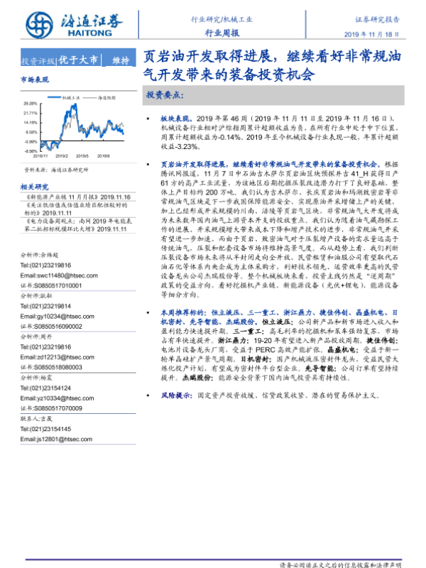 【海通证券】【20191118】20191118-海通证券-机械工业行业周报:页岩油开发取得进展,继续看好非常规油气开发带来的装备投资机会-10页 行业研究