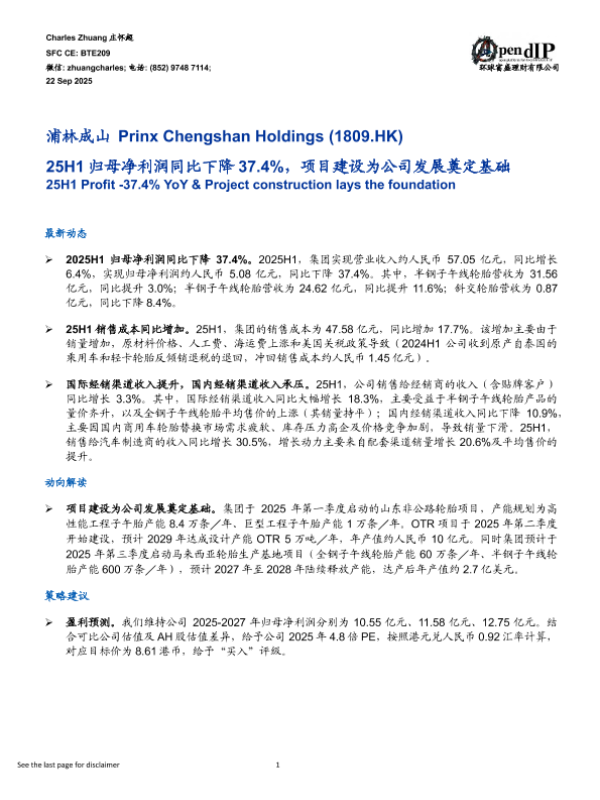 【环球富盈理财有限公司】【202509】浦林成山-25H1归母净利润同比下降37.4%,项目建设为公司发展奠定基础-6页 证券期货研究报告