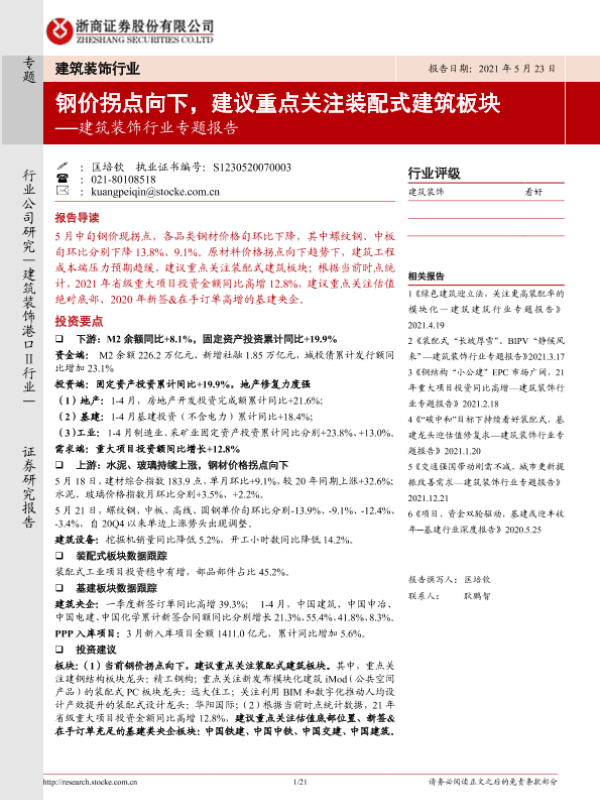 【浙商证券】【20210523】钢价拐点向下,建议重点关注装配式建筑板块-21页 行业研究