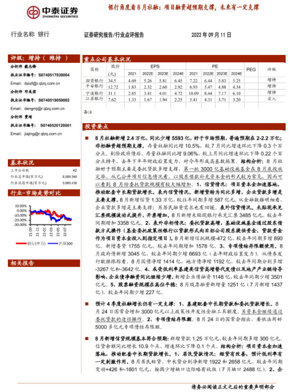 【中泰证券】【20220911】银行角度看8月社融:项目融资超预期支撑,未来有一定支撑-13页 行业研究