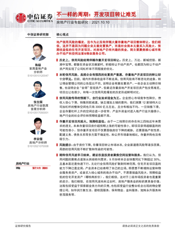 【中信证券】【20211010】房地产行业专题研究:不一样的周期,开发项目转让难觅-18页 行业研究