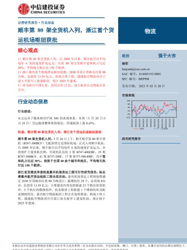 【中信建投证券】【20230328】物流行业:顺丰第80架全货机入列,浙江首个货运机场枢纽获批-24页 行业研究