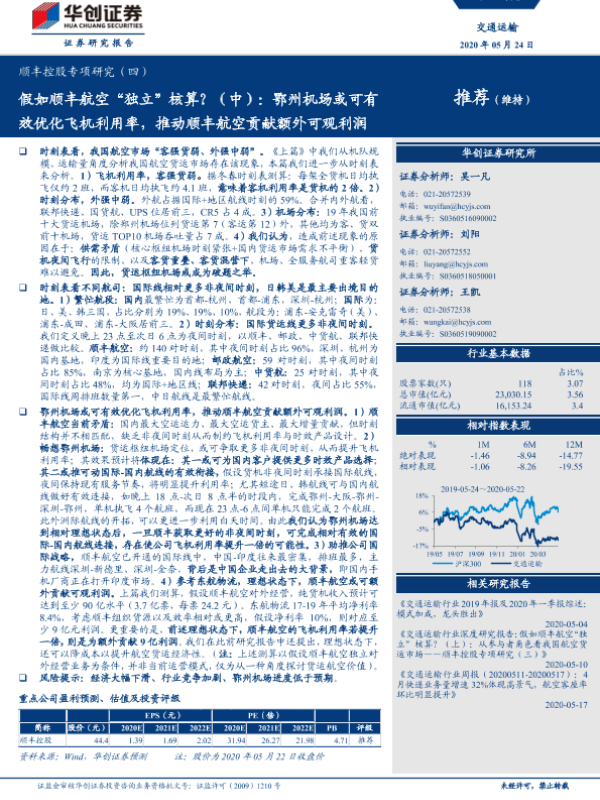 【华创证券】【20200524】假如顺丰航空“独立”核算?(中):鄂州机场或可有效优化飞机利用率,推动顺丰航空贡献额外可观利润-34页 行业研究