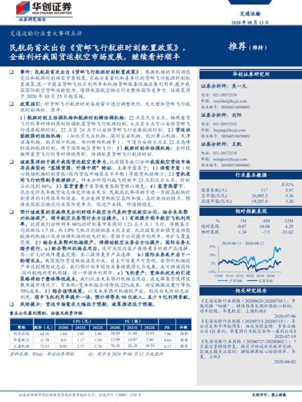 【华创证券】【20200813】民航局首次出台《货邮飞行航班时刻配置政策》,全面利好我国货运航空市场发展,继续看好顺丰-7页 行业研究