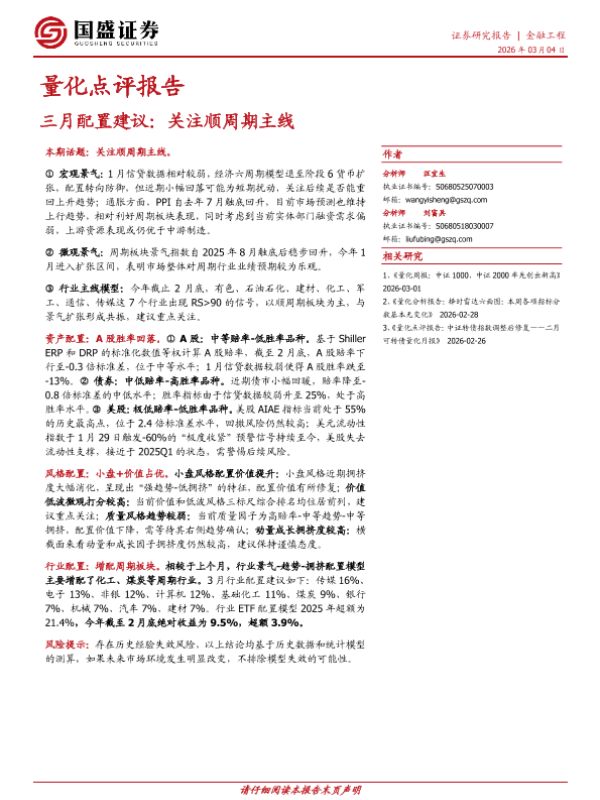 【国盛证券】【202603】三月配置建议:关注顺周期主线-16页 证券期货研究报告