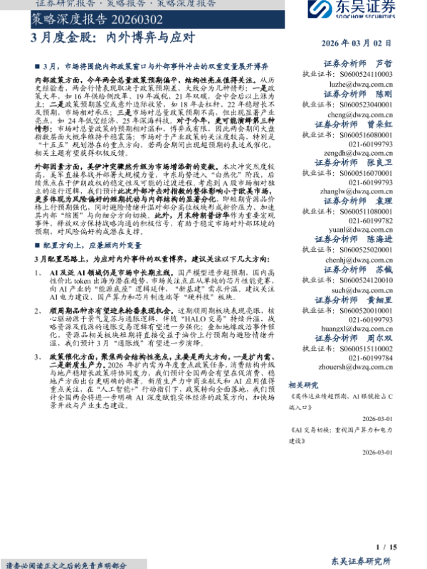 【东吴证券】【202603】3月度金股:内外博弈与应对-15页 证券期货研究报告