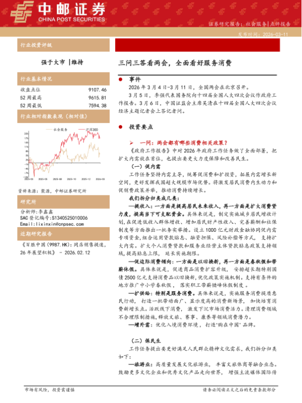 【中邮证券】【202603】社会服务:三问三答看两会,全面看好服务消费-5页 证券期货研究报告