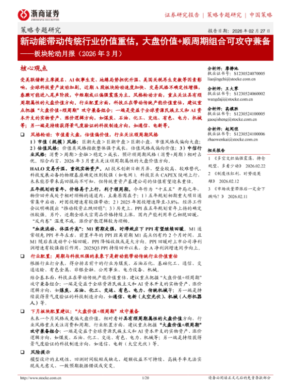 【浙商证券】【202603】新动能带动传统行业价值重估,大盘价值+顺周期组合可攻守兼备-20页 证券期货研究报告