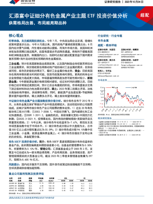 【国信证券】【20231004】汇添富中证细分有色金属产业主题ETF投资价值分析:供需格局改善,布局顺周期品种-32页 行业研究