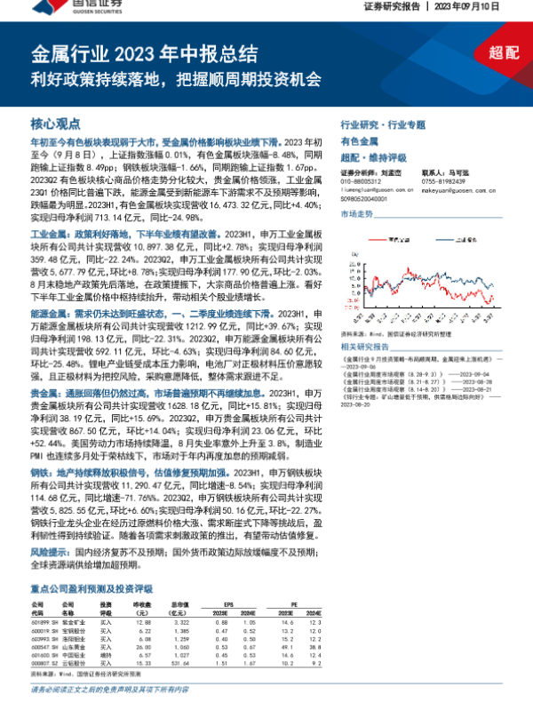 【国信证券】【20230910】金属行业2023年中报总结:利好政策持续落地,把握顺周期投资机会-31页 行业研究