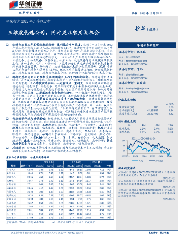 【华创证券】【20231109】机械行业2023年三季报分析:三维度优选公司,同时关注顺周期机会-58页 行业研究
