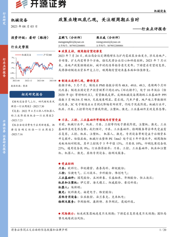 【开源证券】【20230803】20230803-开源证券-机械设备行业点评报告:政策业绩双底已现,关注顺周期正当时-20页 行业研究