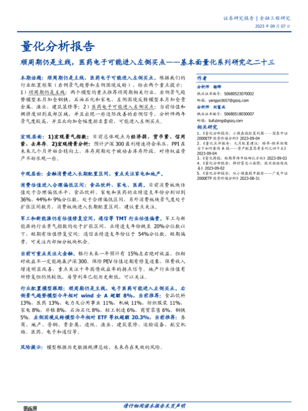 【国盛证券】【20230907】基本面量化系列研究之二十三:顺周期仍是主线,医药电子可能进入左侧买点-19页 行业研究