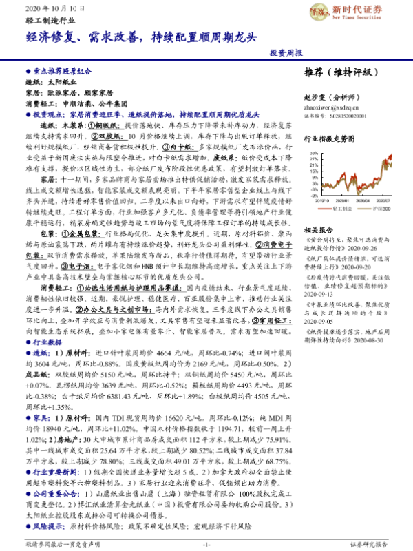 【新时代证券】【20201010】20201010-新时代证券-轻工制造行业投资周报:经济修复、需求改善,持续配置顺周期龙头-22页 行业研究