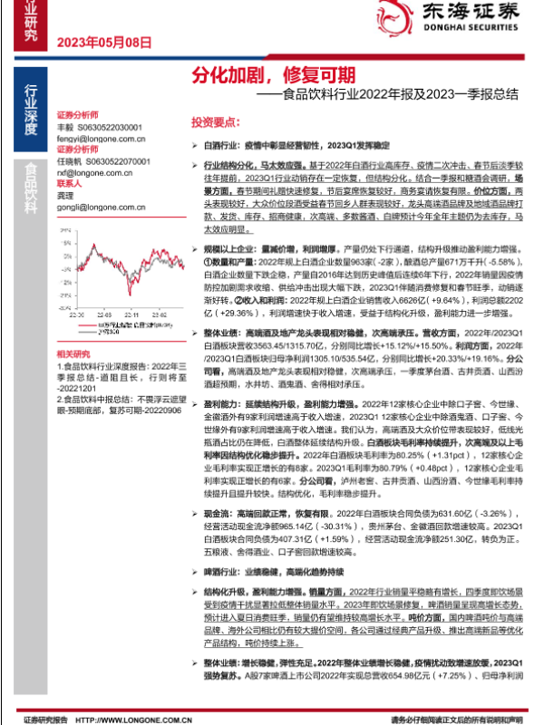 【东海证券】【20230508】食品饮料行业2022年报及2023一季报总结:分化加剧,修复可期-44页 行业研究