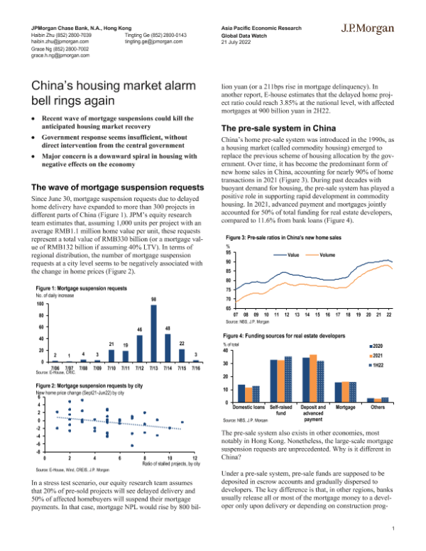 【J.P. Morgan】【20220721】中国的住房市场警钟再次敲响-3页 行业研究