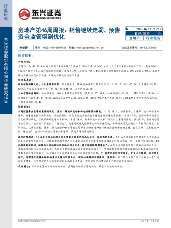 【东兴证券】【20221121】房地产第46周周报:销售继续走弱,预售资金监管得到优化-21页 行业研究