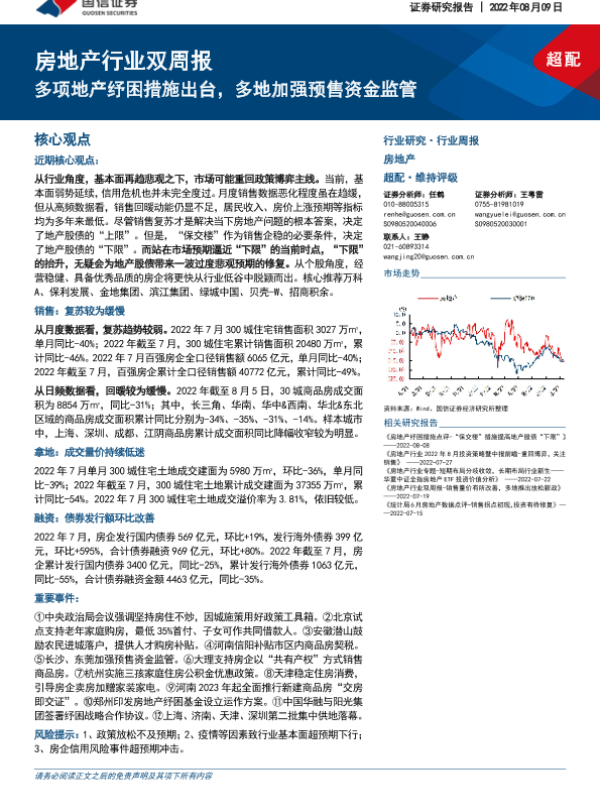 【国信证券】【20220809】房地产行业双周报:多项地产纾困措施出台,多地加强预售资金监管-12页 行业研究