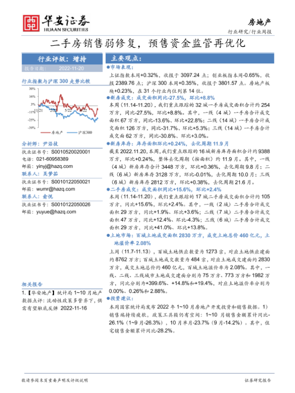 【华安证券】【20221120】房地产行业周报:二手房销售弱修复,预售资金监管再优化-19页 行业研究