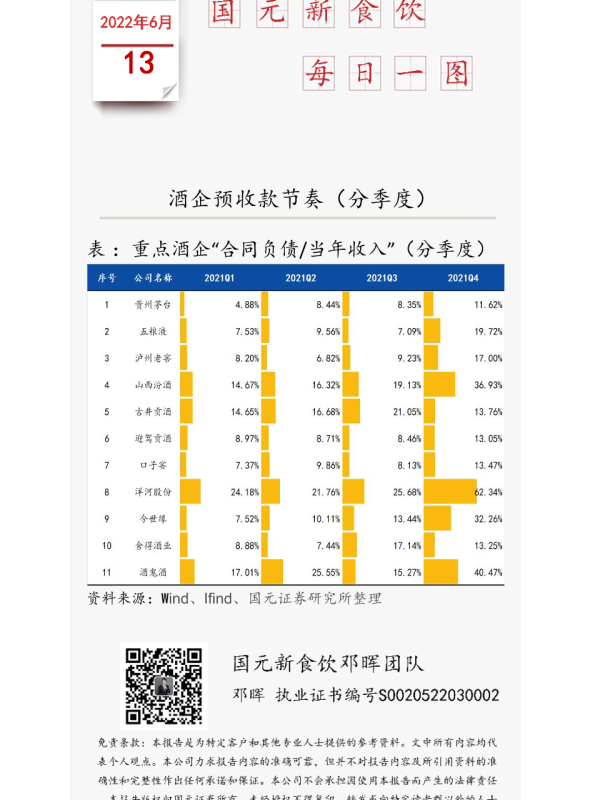 【国元证券】【20220613】国元新食饮每日一图:酒企预收款节奏(分季度)-1页 行业研究
