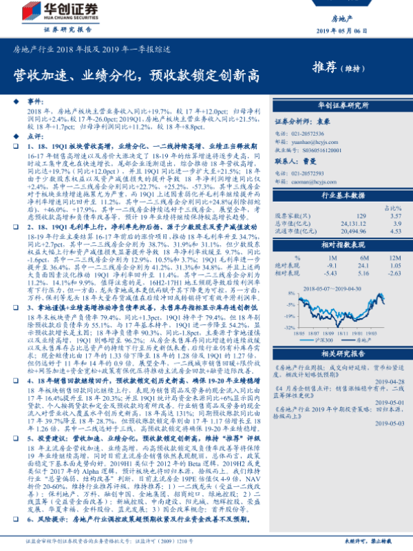 【华创证券】【20190506】房地产行业2018年报及2019年一季报综述-22页 行业研究