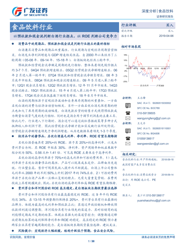 【广发证券】【20190406】食品饮料行业深度分析:以预收款和现金流判断白酒行业拐点,以ROE判断公司竞争力-36页 行业研究