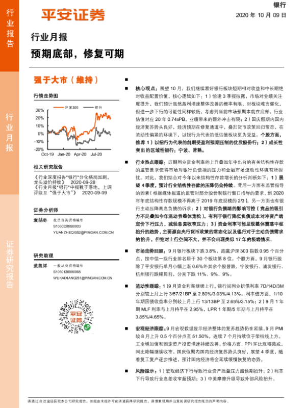 【平安证券】【20201009】银行行业月报:预期底部,修复可期-15页 行业研究