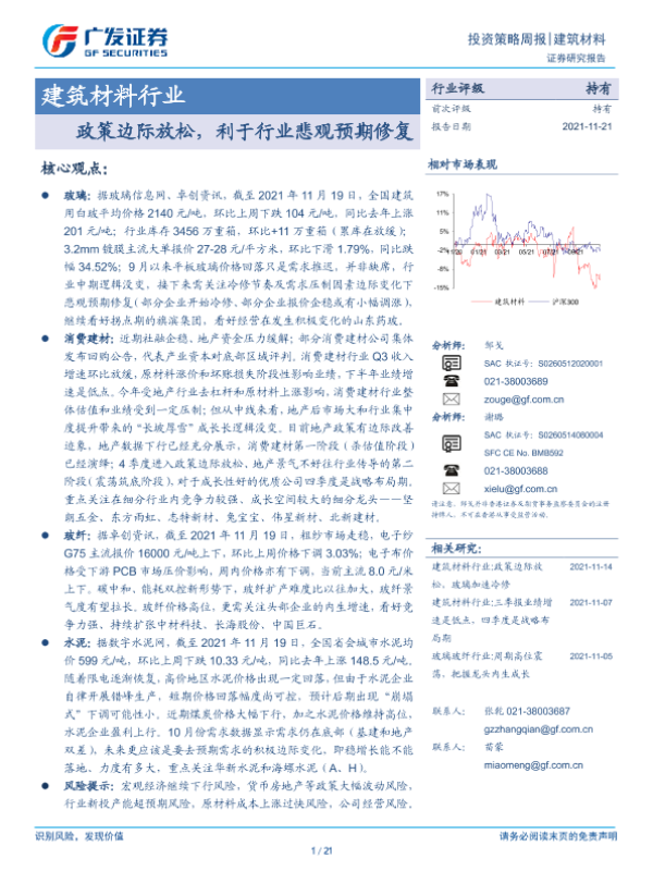 【广发证券】【20211121】建筑材料行业:政策边际放松,利于行业悲观预期修复-21页 行业研究