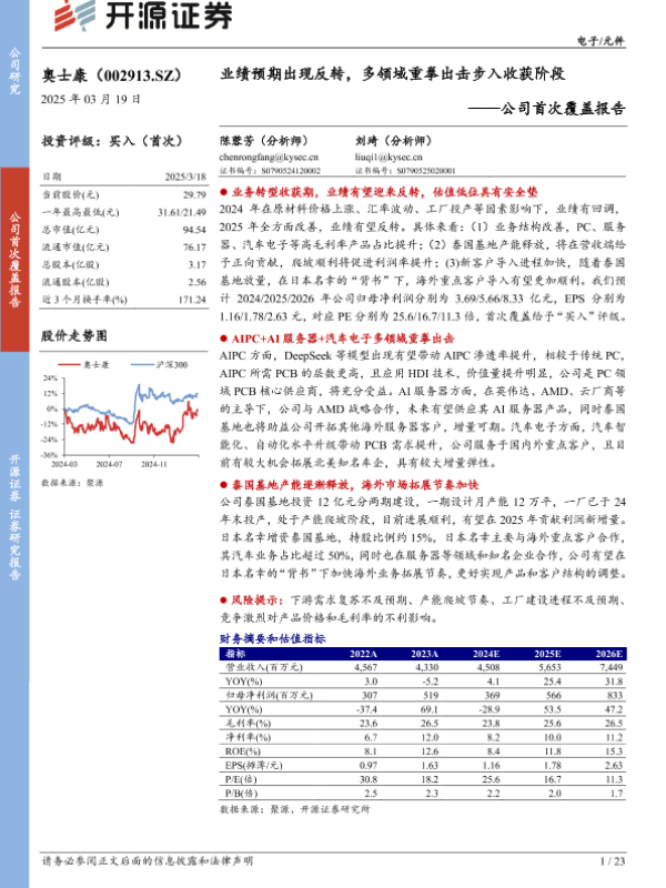 【开源证券】【20250319】奥士康-002913.SZ-公司首次覆盖报告:业绩预期出现反转,多领域重拳出击步入收获阶段-23页 公司研究