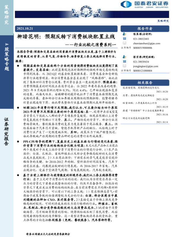 【国泰君安证券】【20211021】柳暗花明,预期反转下消费板块配置主线-21页 行业研究