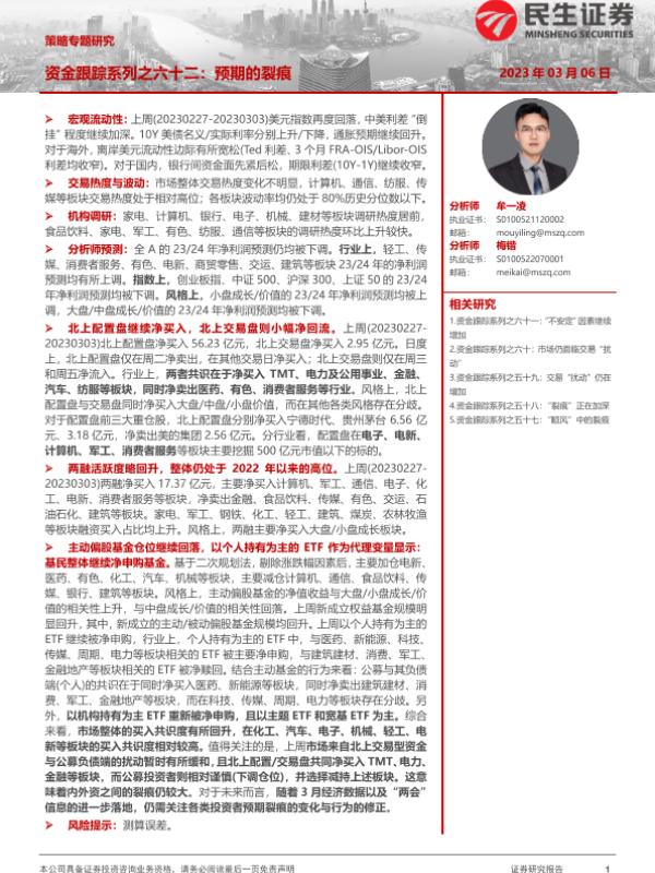【民生证券】【20230306】策略专题研究:资金跟踪系列之六十二,预期的裂痕-35页 行业研究