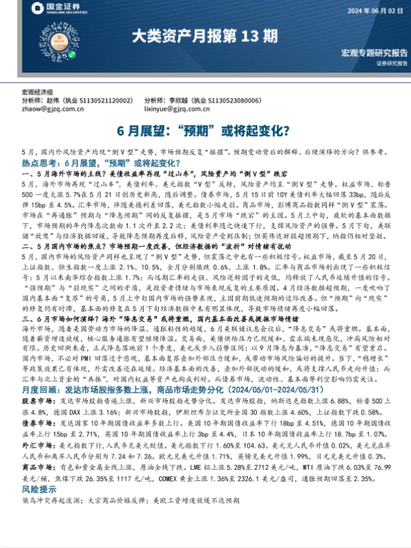 【国金证券】【20240602】大类资产月报第13期:6月展望,“预期”或将起变化?-26页 行业研究