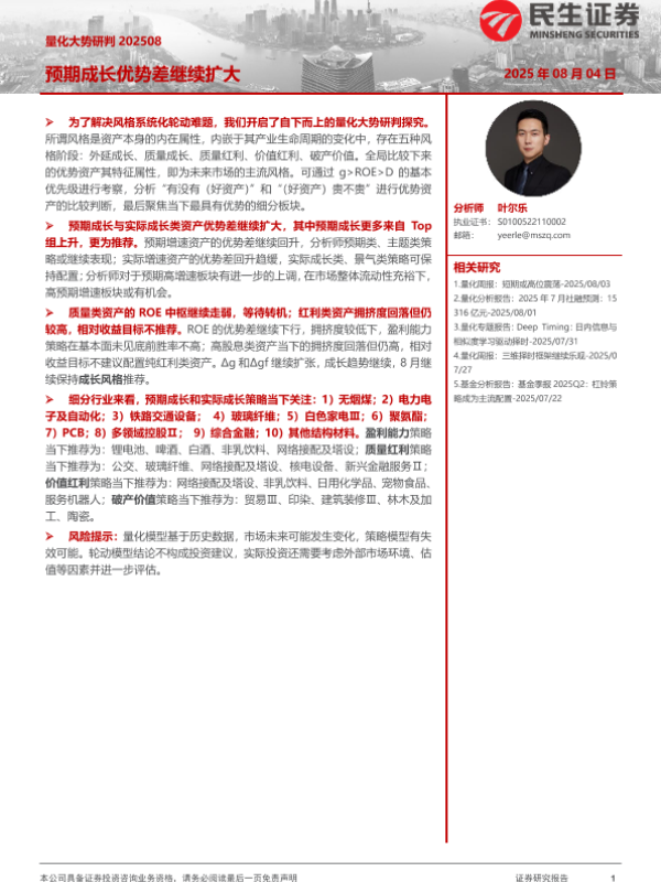 【民生证券】【20250804】量化大势研判_预期成长优势差继续扩大-19页 证券期货研究报告