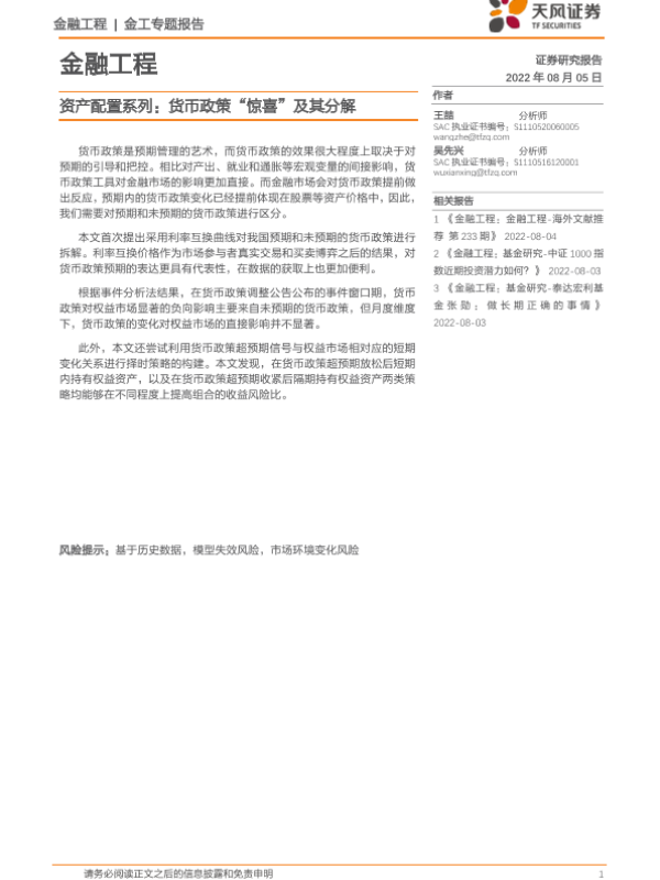 【天风证券】【20220805】资产配置系列:货币政策“惊喜”及其分解-17页 行业研究