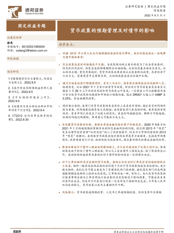 【德邦证券】【20220911】固定收益专题:货币政策的预期管理及对债市的影响-33页 行业研究