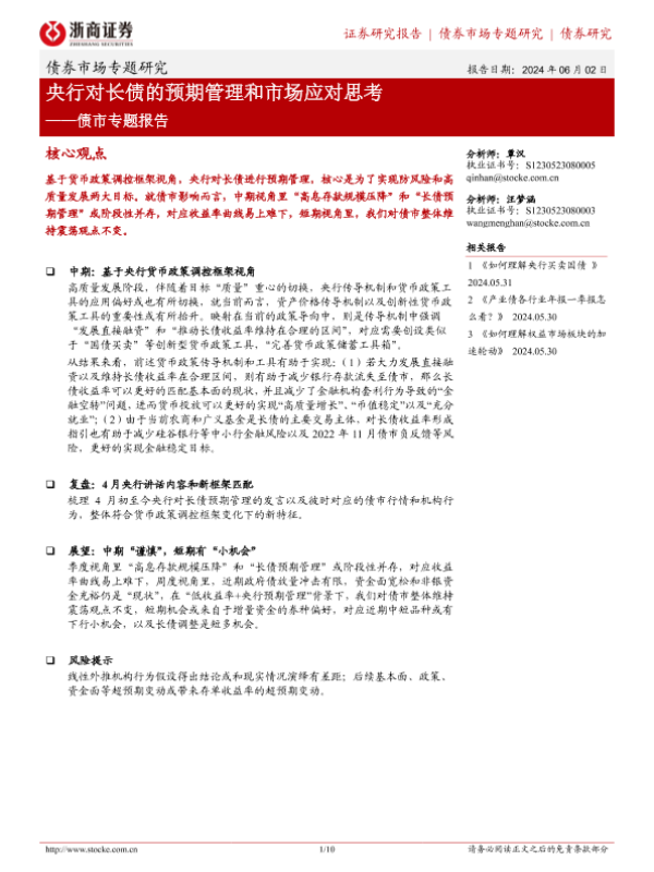 【浙商证券】【20240602】债市专题报告:央行对长债的预期管理和市场应对思考-10页 行业研究