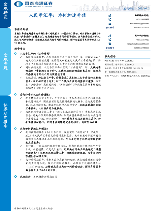 【国泰海通证券】【20250901】人民币汇率:为何加速升值-6页 证券期货研究报告