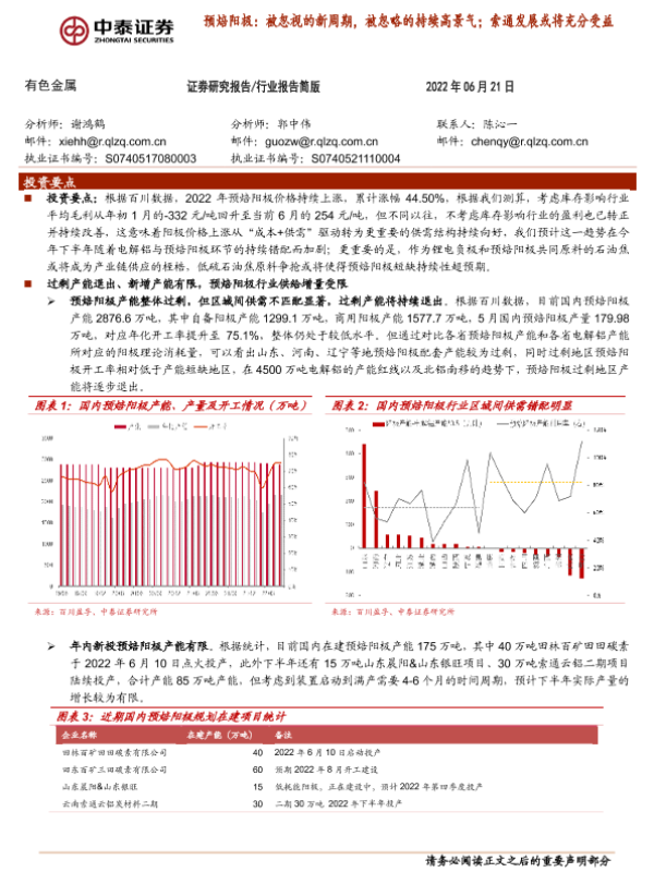 【中泰证券】【20220621】预焙阳极:被忽视的新周期,被忽略的持续高景气;索通发展或将充分受益-6页 行业研究