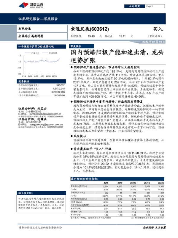 【国信证券】【20200719】国内预焙阳极产能加速出清,龙头逆势扩张-34页 行业研究