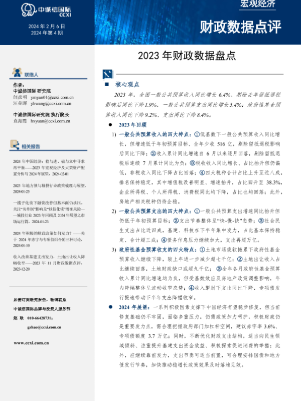 【中诚信国际】【20240206】2023年财政数据盘点-11页 行业研究