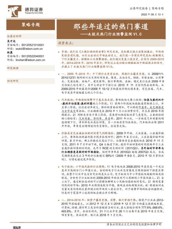 【德邦证券】【20220913】A股及热门行业预警监测V1.0:那些年追过的热门赛道-54页 行业研究