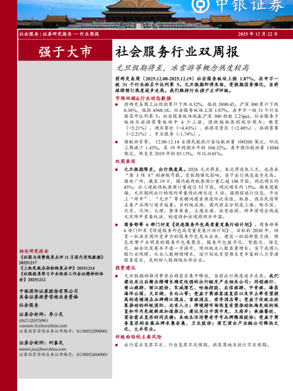【中银证券】【202512】社会服务行业双周报-14页 证券期货研究报告