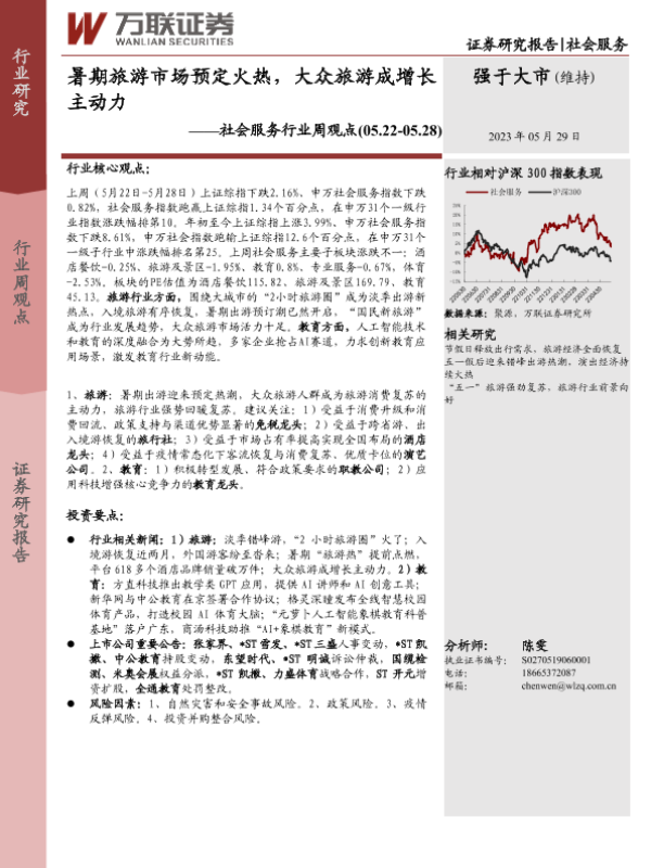 【万联证券】【20230529】社会服务行业周观点:暑期旅游市场预定火热,大众旅游成增长主动力-10页 行业研究